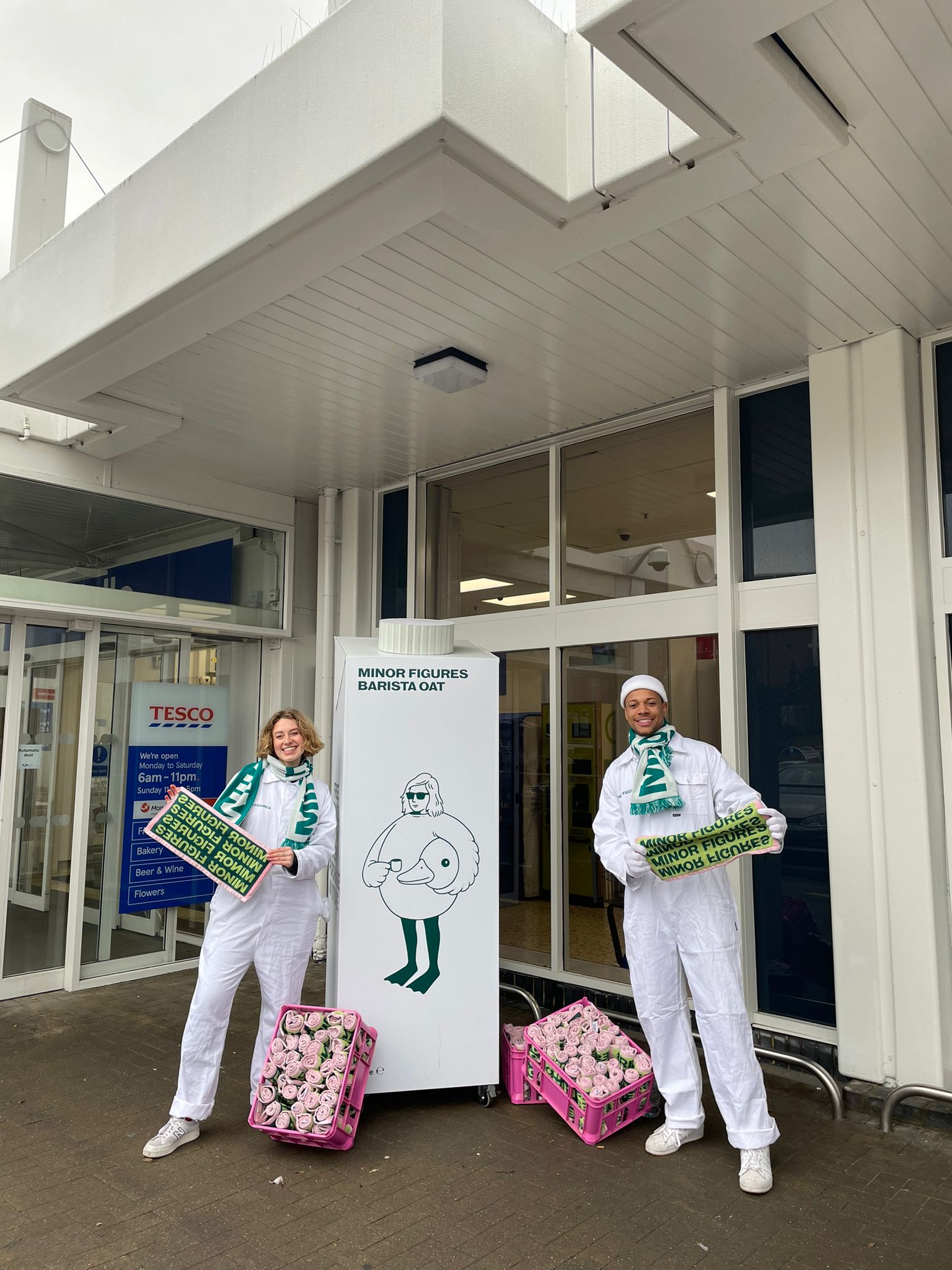 Building on their strong brand spirit, we produced a giant replica of the Oat M*lk carton stopping consumers in their tracks as they entered key retailers. Additional marketing materials were sourced that fit with the brands urban, early adopter route and a highly desirable gift with purchase mechanic was implemented to encourage immediate sales – a branded Minor Figures bar towel.