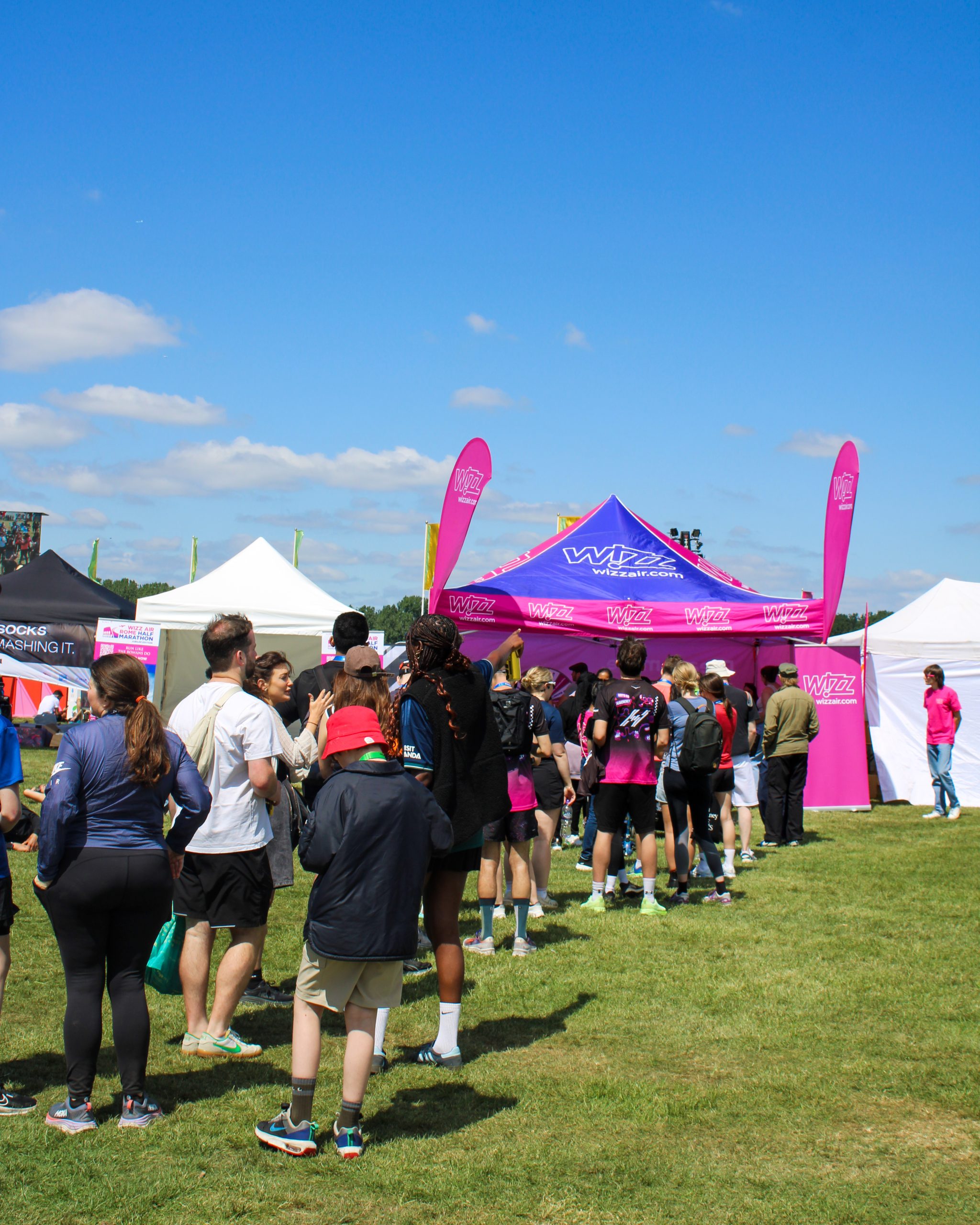 Highjam supported Wizz Air’s pop-up tent at the Hackney Half Marathon 2025. Event Hosts assisted with set-up the day before and ran the activation on the live day, driving footfall, engaging visitors in quality conversations, and encouraging participation in interactive activities and competition entries. The stand was strategically positioned to maximize footfall, creating strong engagement and repeat interest from previous attendees.
